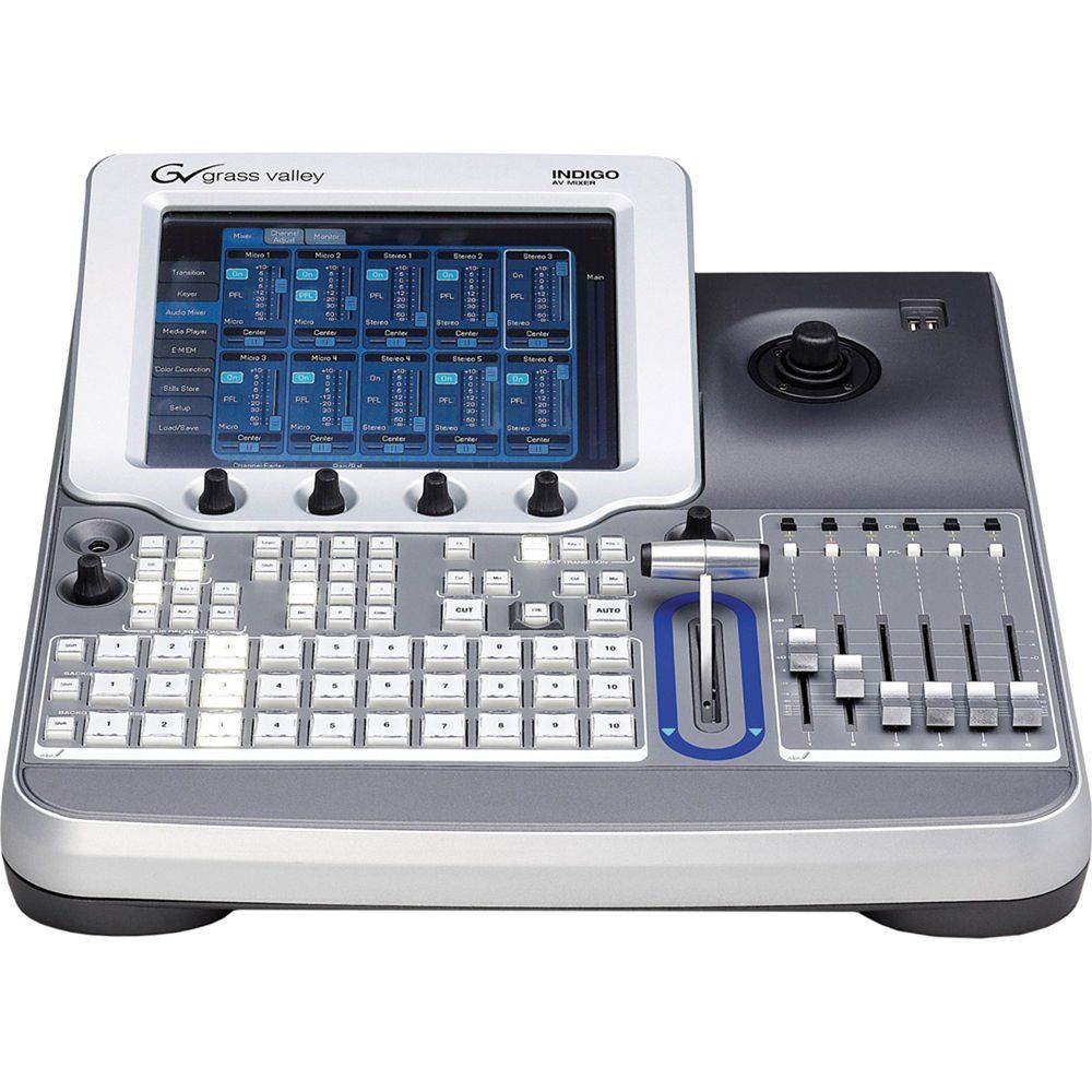 The Grass Valley™ Indigo™ AV Mixer is a new class of high-quality, multi-format audio/video mixer. Combining features normally found in video production switchers, AV presentation mixers, and audio mixers, it is a powerful, cost-effective, and easy-to-operate platform for live-presentation environments.